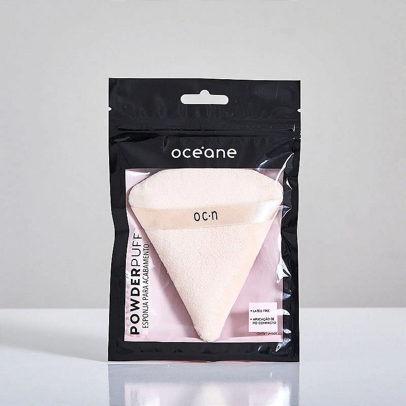 Esponja de veludo oceane ideal para aplicação de pó solto ou ajuda a servir de apoio ao maquiar a pele.