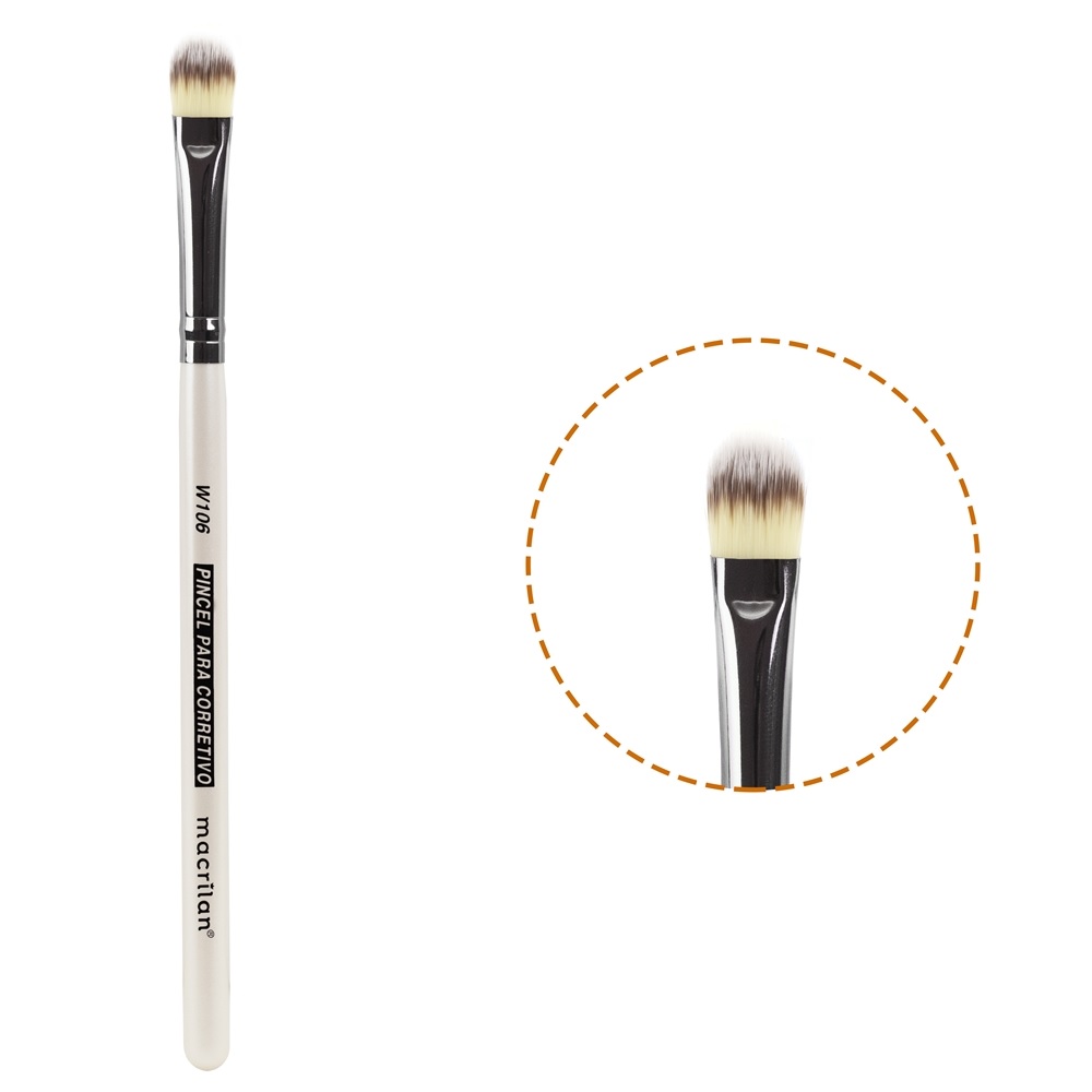 O Pincel W106 da Macrilan foi especialmente desenvolvido para a aplicação precisa de corretivos faciais, proporcionando um acabamento suave e uniforme na pele. Suas cerdas sintéticas de alta qualidade garantem conforto durante o uso, sendo ideais para produtos líquidos ou cremosos.
