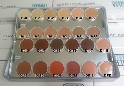 Paleta Dermacolor Camouflage Kryolan com 24 cores è ideal para uso profissional. Dermacolor Camouflage Creme è uma maquiagem altamente pigmentada, Á prova d’água, que è projetada para corrigir e cobrir desfigurações de pele, cicatrizes, olheiras, espinhas, vitiligo, manchas, descolorações e tatuagens. Dermacolor Camouflage è especialmente indicado para rosto e pescoço. Com o uso adequado do sistema Dermacolor Camouflage, as anormalidades na pele podem ser facilmente corrigidas.
