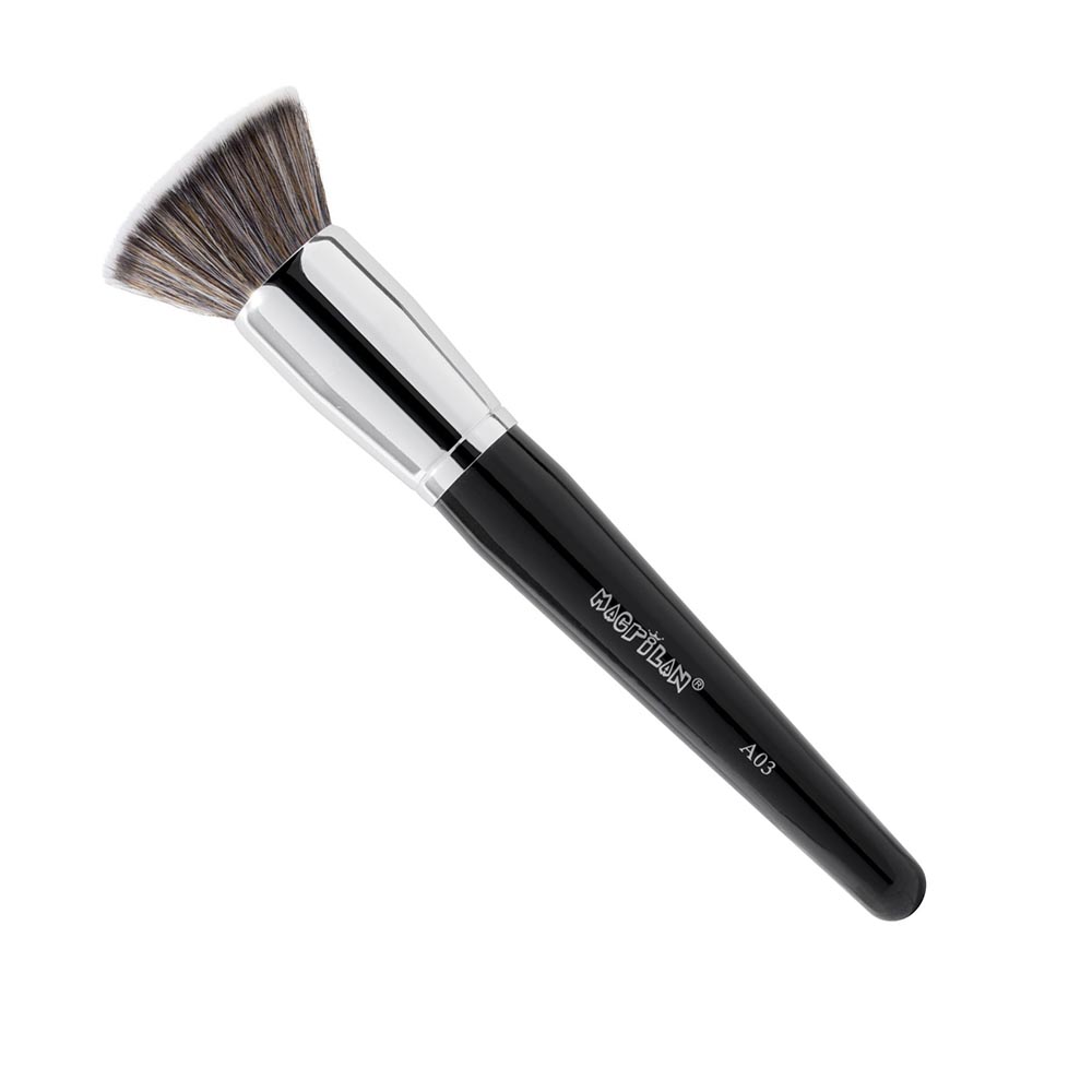Feito com cerdas sintéticas macias e densas, o Pincel Kabuki A03 é ideal para aplicar bases líquidas, cremosas ou em pó. Sua forma densa e arredondada permite que a base seja distribuída de maneira uniforme, alcançando todos os contornos do rosto, incluindo áreas de difícil acesso como ao redor do nariz e dos olhos.