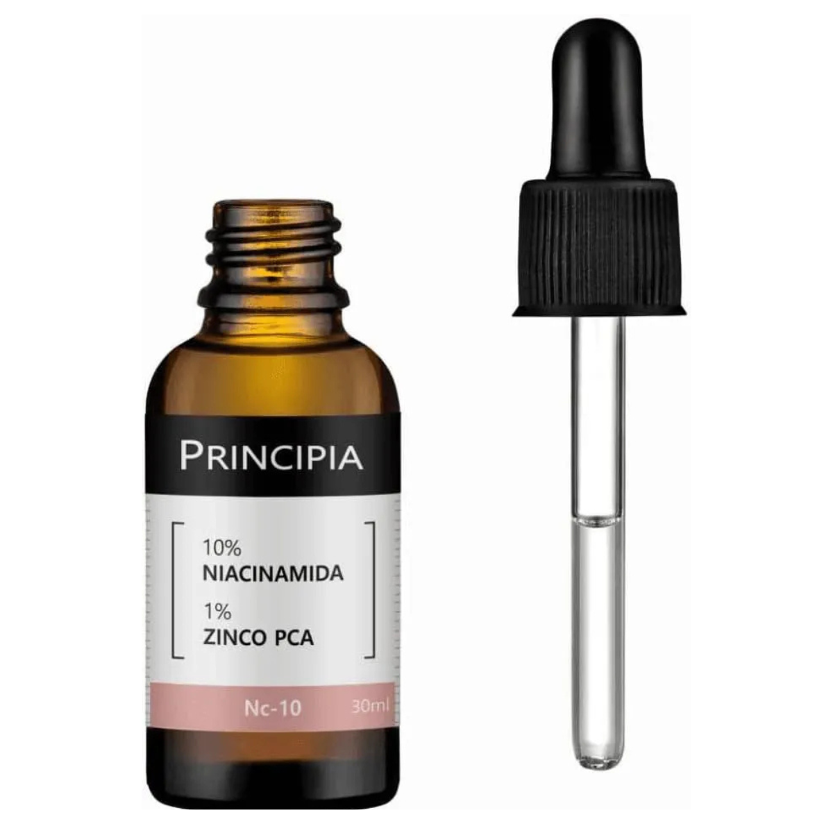 O Principia Serum Niacinamida NC10 30ml é um sérum facial formulado com 10% de niacinamida (vitamina B3) e 1% de zinco PCA, desenvolvido para tratar peles oleosas e com tendência à acne. Sua fórmula ajuda a controlar a oleosidade, reduzir a incidência de acne, minimizar poros dilatados, clarear manchas escuras e uniformizar a tonalidade da pele. Além disso, proporciona hidratação sem deixar a pele oleosa, melhorando a textura e o viço da pele. É dermatologicamente testado, hipoalergênico, livre de parabenos, petrolato, corantes, silicones e fragrâncias, e não é testado em animais .